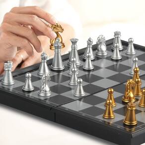 Vikutu Conjunto de xadrez magnético de 19 cm para viagem, pequeno portátil, dobrável, jogos de tabuleiro de xadrez - Mini estilo portátil – Eleve seu pequeno conjunto de xadrez com nosso conjunto de xadrez magnético de bolso que oferece muita diversão em um mini pacote. Leve a emoção do xadrez no seu bolso onde quer que você vá! - Atração magnética – Nossas peças de xadrez são equipadas com ímãs, garantindo uma aderência segura no tabuleiro mesmo em viagens acidentadas. Desfrute do jogo de xadrez magnético ininterrupto em qualquer superfície com confiança. - Conveniência compacta – conjunto de xadrez portátil medindo apenas 19 x 19 cm, nosso mini tabuleiro de xadrez é o companheiro de viagem perfeito. Fácil de embalar, sem esforço para jogar. - Ideia de presente – além de um jogo, nosso mini conjunto de xadrez é um presente encantador para crianças, amigos ou familiares. Seu design fofo e jogabilidade estratégica o tornam uma opção de presente atenciosa e envolvente. - Duradouro e leve: feito de plástico liso de alta qualidade, nosso conjunto de xadrez magnético para viagem atinge o equilíbrio perfeito entre durabilidade e portabilidade. Armazene as peças com segurança dentro do quadro para maior comodidade