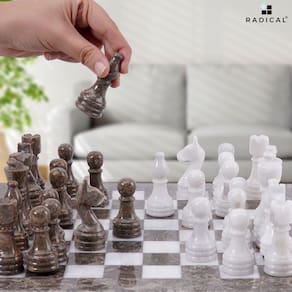 RADICALn Jogo de tabuleiro de xadrez popular de mármore cinza e branco com peso oceânico feito à mão para adultos – Novo jogo de xadrez clássico estilo presente de torneio – Non-Othello, sem gamão, sem madeira - WHAT IS INCLUDED] 1 x Chess Board & 32 x Chess Figures: 2 Kings, 2 Queens, 4 Knights, 4 Bishops, 4 Rooks, 16 Pawns. Comes With RADICALn Branded Secure & Fragile Packaging. - MATERIAL - This Chess Set Is Made of High-Quality Natural Marble. The Chess Board And Chess Figures Are Fully Hand-Polished. - SIZE Board Size - 12 Inches. King Measures: 2.7 Inches. Queen: 2.5 Inches. Bishop: 2.2 Inches. Knight: 2.2 Inches. Rook: 2.2 Inches. Pawns: 1.8 Inches. The Chess Board comes along with an attached felt bottom to avoid scratches. Separate felt bottoms packet for all chess figures. - FOR EVERYONE - It Is The Best Board Game For People of Any Age Group Adults. - MULTI-PURPOSE - This Chess Set Can Be An Exciting Gift And Also Be Used As A Home Decor Item.