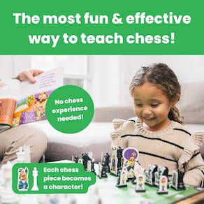 - Ótimo jogo de xadrez para iniciantes: se você é um especialista em xadrez ou nunca jogou antes, o Story Time Chess contém tudo o que é necessário para ensinar às crianças (e a si mesmo!). As histórias envolventes, minijogos exclusivos, tabuleiro colorido e peças personalizadas vibrantes permitem que qualquer pessoa ensine xadrez para iniciantes – sem necessidade de experiência de xadrez!