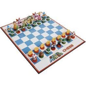 Mario e Bowser estão se enfrentando mais uma vez; desta vez no clássico jogo de xadrez. Escolha sua equipe e assuma o controle de 32 peças pintadas à mão, incluindo: Mario, Luigi, Bowser e muito mais.