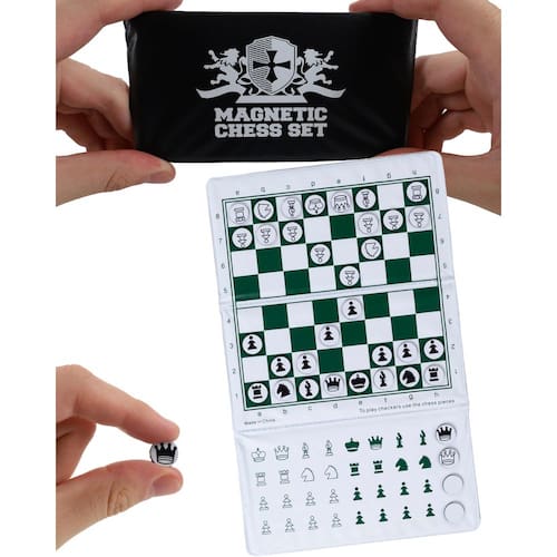 Liberte a alegria do xadrez onde quer que a vida o leve nosso jogo de xadrez magnético. Tamanho perfeito para portabilidade, nossos conjuntos de xadrez de 15,2 cm e 25,4 cm para adultos dobram-se perfeitamente para caber em qualquer bolsa ou bolso, tornando-os um companheiro de xadrez de viagem ideal para viagens ao parque, cafeteria ou até mesmo voos de longa distância. Seja você um jogador casual ou um entusiasta de jogos de tabuleiro de xadrez, este conjunto oferece conveniência sem comprometer a qualidade ou a jogabilidade. Projetado para jogar sem costura, o xadrez magnético plano permanece firme no lugar, mesmo em superfícies instáveis, como painéis de carro ou mesas de bandeja de avião. Isso garante que você possa se concentrar na estratégia e na competição sem se preocupar com peças deslizando para fora de posição. Além disso, o xadrez magnético inclui duas rainhas extras e peças em branco, para que você esteja sempre pronto para jogar dinâmico. Feito com cuidado, o tabuleiro de xadrez magnético é feito de vinil flexível premium que oferece durabilidade enquanto mantém uma aparência elegante. O design dobrável do nosso xadrez portátil também incorpora um painel de armazenamento dedicado para as peças, garantindo organização e proteção durante a viagem. Este não é apenas um jogo; é uma ferramenta cuidadosamente trabalhada projetada para proporcionar uma experiência premium, esteja você ensinando um iniciante ou praticando suas táticas avançadas. - Diversão de xadrez para viagens: compacto e dobrável, este mini conjunto de xadrez cabe em qualquer bolsa ou bolso (14,6 x 8,3 cm dobrado). Leve nosso conjunto de xadrez portátil para o parque, avião ou cafeteria para partidas de xadrez envolventes onde quer que a vida leve você. - Peças de xadrez seguras: os ímãs fortes mantêm as peças de xadrez firmemente no tabuleiro de xadrez, mesmo em superfícies irregulares. Desfrute de jogos ininterruptos durante viagens rodoviárias, voos ou aventuras ao ar livre. - Tabuleiro durável e elegante: feito de vinil premium, este conjunto de tabuleiro de xadrez oferece flexibilidade e durabilidade para uso a longo prazo. O design dobrável do nosso conjunto de xadrez magnético inclui armazenamento de peças embutido para maior conveniência. - Experiência de aprendizagem aprimorada: com notação algébrica, este conjunto de jogo de xadrez é ótimo para afiar a estratégia e o pensamento crítico. Nosso conjunto de xadrez para adultos e entusiastas de xadrez é ideal para iniciantes e jogadores avançados para melhorar suas habilidades. - Herança em que você pode confiar: a WE Games, uma pequena empresa de minoria, une pessoas por meio de jogos de tabuleiro lindamente trabalhados desde 1977. Com foco na qualidade e tradição, nossos jogos são projetados para serem apreciados por muitos anos.