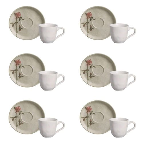 Conjunto de Xícara de Cafezinho com Pires 06 Peças Bio Campestre Porto Brasil - Incluso