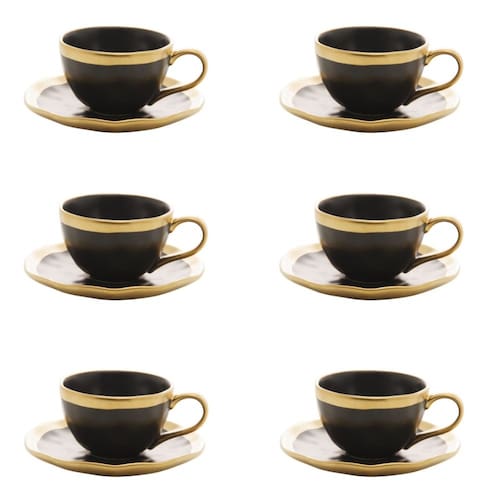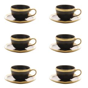 Conjunto de Xícara de Cafezinho com Pires 06 Peças Dubai Preto e Dourado 90ml Wolff