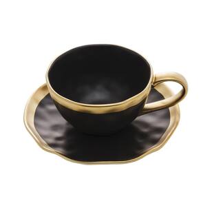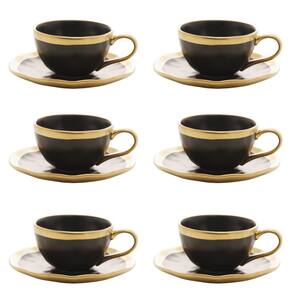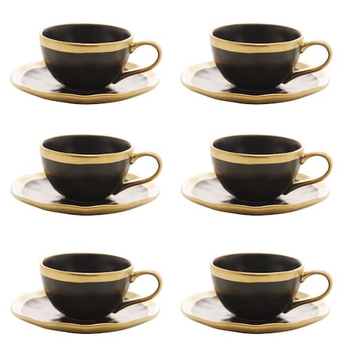 Conjunto de Xícara de Chá com Pires 06 Peças Dubai Preto e Dourado 200ml Wolff