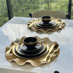 Conjunto de Xícara de Chá com Pires 06 Peças Dubai Preto e Dourado 200ml Wolff - Informações
