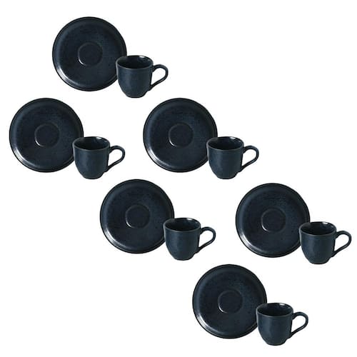 O encanto do azul profundo O conjunto de xícaras de café com pires Porto Brasil Bio Night Blue é a escolha ideal para quem aprecia sofisticação e mistério à mesa. Inspirado na profundidade da noite, seu design combina tons intensos de azul com delicados detalhes em preto, criando um visual fascinante e exclusivo. Com capacidade de 120ml, cada peça eleva o momento do café a uma experiência de elegância e contemplação.
