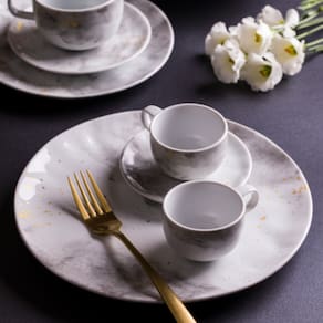 Conjunto De Xícaras Para Café Com Pires Em Porcelana Nuvens Com 12 Peças 100ml Germer -