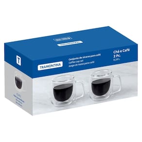Sua mesa vai ganhar outra cara com o Conjunto de Xícaras Tramontina para Café 2 Peças. Para atender aos mais sofisticados e modernos apreciadores de café a Tramontina criou uma linha de utensílios para café com vidro duplo.