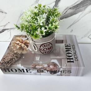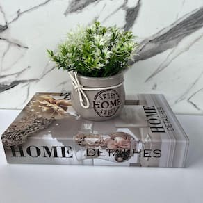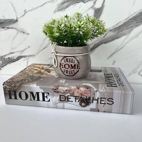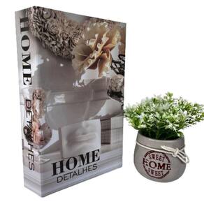 Nada mais encantador, original e inspirador do que utilizar livros na decoração de diversos ambientes, como salas de estar, escritórios, quartos, home office e onde mais sua imaginação permitir. Os livros decorativos são a mais nova tendência na decoração contemporânea e permitem diversas combinações e utilizações, dando um ar de sofisticação em mesas de centro, aparadores, prateleiras, escrivaninhas etc. Esse lindo livro estampa 'Home Detalhes', irá encantar você pela riqueza de detalhes e qualidade no acabamento, junto do vaso cinza de cerâmica que da um toque todo especial no ambiente.