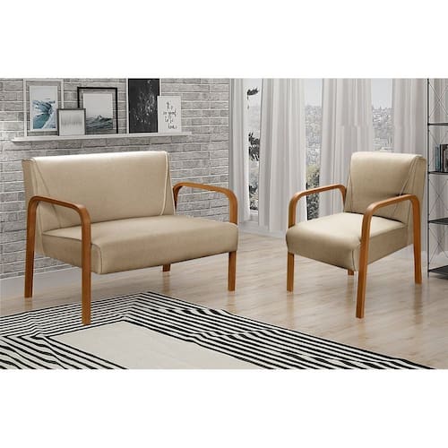 Conjunto Decorativo Anita Kit Namoradeira + Poltrona Sala, Recepção Marrom 150