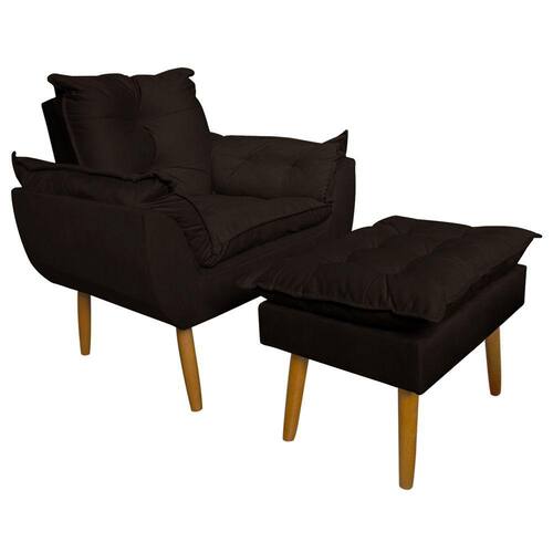 Conjunto Decorativo Poltrona com Puff Opala Suede Marrom - Montanaris Decor chegou uma grande novidade para você, que deseja um produto que lhe trará satisfação e firmeza. A Poltrona Opala é composta por matéria-prima de ótima qualidade, possui o melhor tipo de espuma que irá garantir conforto e durabilidade do produto. Sem falar do seu Design única e diferenciada, ela se adapta em qualquer lugar que desejar!