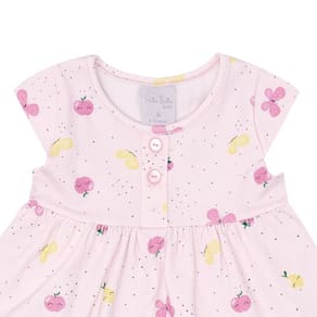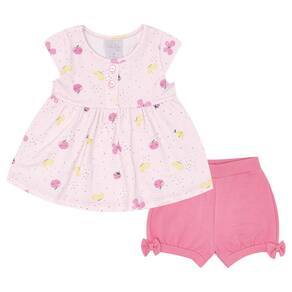 Sua fofurinha merece estar confortável todos os dias! As peças deste conjunto são um verdadeiro mimo e super fresquinhas, a blusa e o short são confeccionados em cotton leve, a blusa possuí estampa de borboletas e frutinhas na cor digital rosa e o short na cor blush possuí detalhes de laços nas laterais da perna, dando mais um toque de fofura para sua baby. Toda delicadeza e conforto que sua pequena merece está aqui.