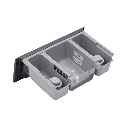 O Conjunto Dispenser para Máquina de Lavar para o armazenamento de sabão em sua lavadora de Roupas. Ele auxilia na medida correta e necessária de abastecimento do produto para cada ciclo, diluindo-o automaticamente durante as lavagens, assim agilizando o processo de cuidado com suas roupas.