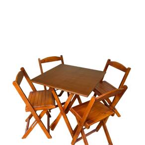 O Conjunto Dobrável Bar 4i Móveis e Madeira é perfeito para quem busca praticidade e elegância em um só produto. Composto por uma mesa dobrável e quatro cadeiras dobráveis, é ideal para otimizar espaços e facilitar o armazenamento. Feito em eucalipto e pinus, garante durabilidade e resistência para o seu ambiente. As cadeiras possuem medidas confortáveis, com 34 cm de profundidade, 48 cm de altura e 37.5 cm de largura. Já a mesa possui 75 cm de altura, 70 cm de comprimento e 70 cm de largura, proporcionando um espaço agradável para refeições e momentos de descontração. Adquira já o seu conjunto e transforme a sua casa com praticidade e estilo. Medida da Mesa (A x L x P): 70x70x86 Peso da Mesa: 10 kg Mesa suporta até: 50 kg Acabamento da Cadeira/Banco: Pintura Acabamento da Mesa: Verniz Ambiente Principal: Jardim e Varanda Cadeira/Banco estofada: Não Cadeira/Banco Estofada: Não Cadeira/Banco suporta até: 150 kg Cadeira/Banco Suporta Até: 150.0000 codigo_ean: 7900288263612 Complexidade da Montagem: Baixa: pode ser montado por uma pessoa sozinha Cor: Mel Cor do Produto: Mel Escala de Brilho: Semi-Brilho Espessura do Tampo: 15 mm Estrutura do Assento: Madeira Itens Inclusos: 1 Mesa e 4 Cadeiras Dobráveis Manual de Montagem e Instalação: https://product-hub-prd.madeiramadeira.com.br/724681898/documents/a07b4aea-547a-497e-b502-cfc75bcbf7563269019667617600986534589.pdf Marca: MÓVEIS 4I Material da Base da Mesa: Madeira Material da Estrutura da Cadeira: Madeira Material do Tampo: MDF Material Principal: Madeira Maciça Medida da Cadeira/Banco (A x L x P): 80x37,5x34,5 Medida do Tampo (L x C x E): 70x70x15 Necessita Montagem: Sim Origem do Produto: Nacional Peso da Cadeira/Banco: 4,5 kg Possui Apoio para Braços: Não Possui Apoio Para os Pés: Sim Quantidade de Cadeiras: 4 Quantidade de Lugares: 04 Recomendações de Uso, Manutenção e Limpeza: Não Requer Montagem Sistema de Montagem: Não Requer Marca: Não Informado