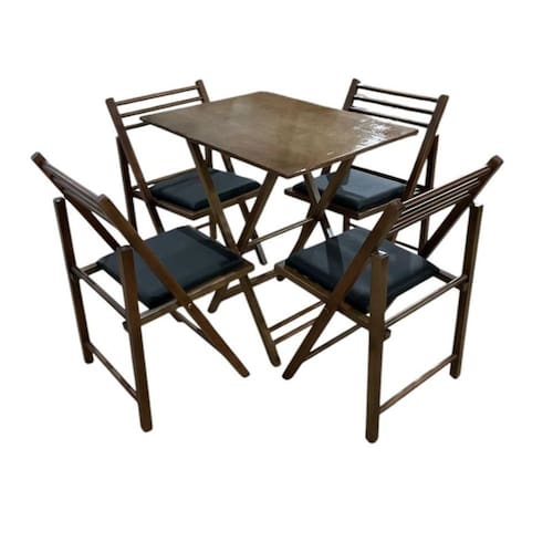 Este conjunto conta com uma mesa dobrável de tampo em madeira multilaminada e quatro cadeiras dobráveis com assento estofado, ideais para proporcionar aconchego mesmo em espaços reduzidos. Prático, elegante e fácil de guardar, é perfeito para apartamentos, varandas, cozinhas ou ambientes com pouco espaço.