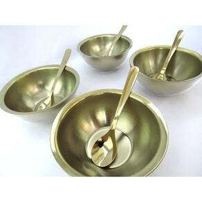 O Conjunto de Sobremesa Dourado Fineza possui uma parede dupla feita em aço inox de alto padrão e poliestireno, que proporciona a temperatura ideal para a sua sobremesa, seja ela fria ou quente. O dourado do Conjunto de Sobremesa Dourado Fineza é feito com revestimento de qualidade. Não é pintura e não descasca.