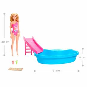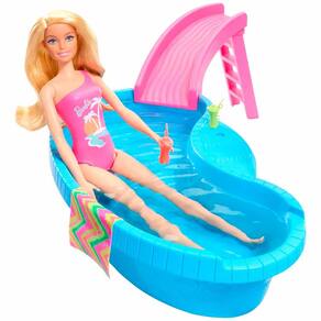 Conjunto e Boneca - Barbie Dreamhouse - Piscina Glam - Mattel: deslize para a diversão de verão com a boneca Barbie e sua Piscina Glam! É fácil encher e esvaziar a piscina para uma festa da Barbie - e com espaço para colocar outras bonecas! Detalhes: • A Barbie pode deslizar pelo tobogã e dar um mergulho ou relaxar sentada na beirada da piscina • Um design colorido inspirador com estilo e acessórios que estimulam a imaginação • Duas bebidas frescas podem ser encaixadas nos suportes da piscina • Uma toalha com uma estampa colorida ajudam a definir o cenário para o dia de calor • Essa Barbie é esculpida perfeitamente para brincadeiras na água Informações: • Produto: Conjunto Piscina Glam com Boneca Barbie Maiô Rosa • Marca: Mattel • Coleção: Barbie Dreamhouse Adventures • Tipo: Boneca com Cenário • Categoria: Bonecas e Cia • Tamanho (C x A x L): - 31 x 06 x 13 cm (Piscina) - 06 x 30 x 04 cm (Boneca) • Conteúdo: - 01 boneca Barbie loira - 01 piscina - 01 escorregador com escada - 01 toalha - 02 bebidas • Recomendação: para crianças a partir de 03 anos de idade Especificações: • Modelo: Barbie Estate Piscina Glam com Boneca Loira • Referência: HRJ74 • Código de Barras: 194735178285 • Embalagem (C x A x L): 32.5 x 32 x 07 cm • Embalagem (Peso): 0.510 kg • Material / Composição: Plástico • Registro: 005987/2021 • Certificado: Órgãos Autorizados - OCP´S (Organismos de Certificação de Produtos) Aviso: • As imagens são meramente ilustrativas • Os pesos, tamanhos e medidas são aproximados • As cores e estampas dos produtos podem ter variações • As informações são de responsabilidade do fabricante ou fornecedor