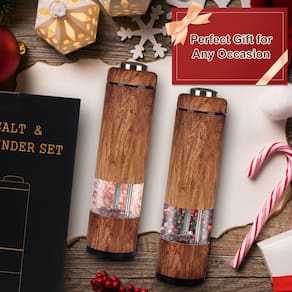 - 👍Design atencioso – Feito de aço inoxidável escovado com um padrão requintado de grão de madeira, traz um visual rústico e acolhedor à sua mesa de jantar. O moedor de pimenta operado por bateria pode ser operado com uma mão, e a janela de acrílico transparente permite que você identifique os temperos e veja os níveis restantes.