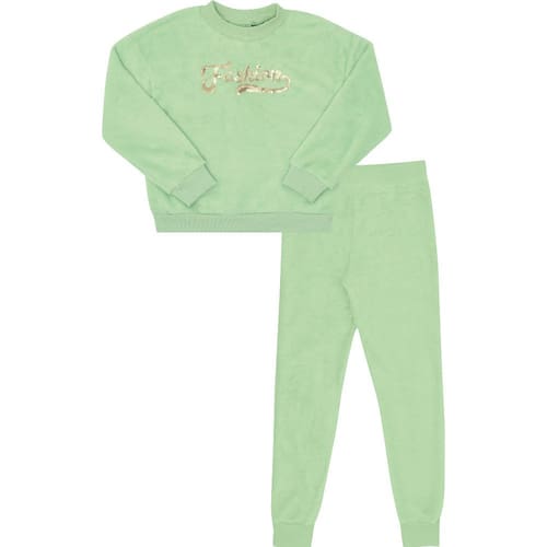 Para ajudar na escolha do look perfeito na hora de sair a Pulla Bulla trouxe esse conjuntinho. Composto por um blusão com a estampa “Fashion” bordada em paetê, confeccionado em pelo na cor verde e uma calça lisa, confeccionada em pelo na cor verde, proporcionando ainda conforto e charme na hora de compor os looks da sua gatinha.