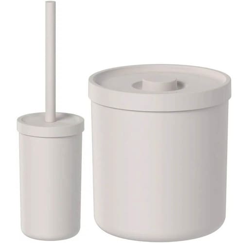 Conjunto Escova Sanitária e Lixeira 6L de Banheiro Plástica Bold Bege Ou Organize.