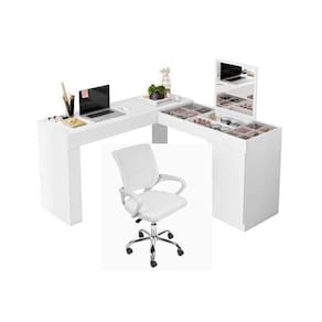 A Escrivaninha de Canto com Penteadeira STAR é um móvel de design moderno e multifuncional, além das funcionalidades de uma Escrivaninha, possui espaço organizador para objetos e joias, contendo também espelho que é fixo (não abre e fecha).