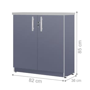 O Armário é emMDP 15 mm, acabamento de bordas em ABS, tampo superior 30 mm, pés com niveladores de altura e porta com chave