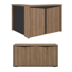 Conjunto Escritório: Balcão Atendimento 6309 + Balcão 6293 - Nogal | Preto