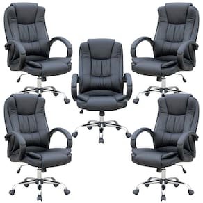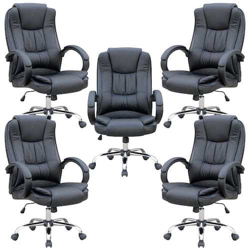 Conjunto Escritório com 5 Cadeiras Presidente Nice Giratória Regulagem de Altura à Gás Revestimento Preto