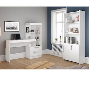 Caracter?sticas do Arm?rio: Estrutura MDP 2 Portas com chave Puxadores em alum?nio Prateleiras Nichos para livros e objetos Peso suportado 5kg Caracter?sticas da escrivaninha: Estrutura MDP 2 Gavetas Puxadores em alum?nio Corredi?as met?licas Peso suportado 3 ? 20kg