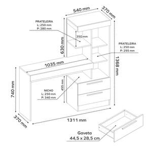 Dimens?es da Escrivaninha: Altura: 136,5 cm Largura: 131,5 cm Profundidade: 37,5 cm Peso: 33,8 kg