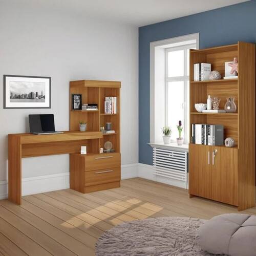 Conjunto Escrit?rio com Escrivaninha NT2010 e Arm?rio com Chave 56118 Not?vel M?veis, ? ideal para organizar livros e documentos, oferecendo tr?s prateleiras, uma interna, puxadores em alum?nio e um arm?rio com chave para seguran?a. A Mesa NT 2010 complementa o ambiente, podendo ser utilizada no quarto ou escrit?rio, com espa?o para computador e objetos essenciais, al?m de nichos laterais e duas gavetas para melhor organiza??o. ? a escolha perfeita para um local de trabalho bem arrumado e funcional.
