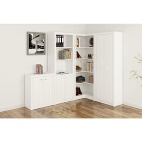 Conjunto Para Escritorio Tecno Mobili, móveis de qualidade que oferecem durabilidade e resistência, com estrutura em MDP de 15mm, pintura com acabamento em BP (Fosco). Armários possui portas com dobradiças metálicas, prateleiras resistentes que suportam até 12 kg cada, tampo do balcão é super resistente suporta até 13 kg, conta com puxadores modernos, possui amplo espaço interno para organizar a papelada do trabalho ou os livros de estudo, este Conjunto Escritório da Linha Tecno Mobili, possui diversas peças que são vendidas separadamente, são ideais pra você compor o melhor projeto pra seu escritório. Estes móveis chegarão em sua casa separados em 04 volumes.