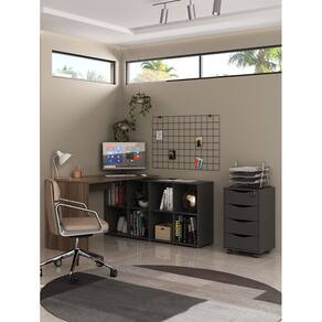 Conjunto Escritório Home: Escrivaninha 6080+ Gaveteiro 5671 - Preto