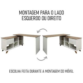 Além do design moderno e tonalidades sóbrias que harmonizam facilmente com qualquer ambiente e ainda dá aquele toque na decoração, essa mesa home office também é sinônima de versatilidade. Primeiro, por ser uma mesa em L que tanto leva otimização na circulação do cômodo, como proporciona uma ampla área de trabalho; segundo porque possui montagem flex, ou seja, você optar o lado que melhor se adequa ao seu ambiente; terceiro, possui traseira revestida, o que permite você aproveita-la em qualquer posição, inclusive como divisor de ambientes.