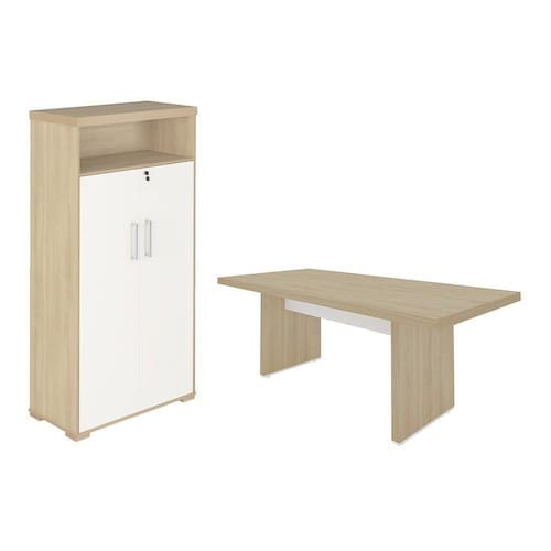 NOME DO PRODUTO NO FORNECEDOR: MESA TAMBURATO 2000 CARVALHO/BRANCO (6199) + ARMÁRIO TAMBURATO COM NICHO CARVALHO/BRANCO (6207) | ESTADO DE ORIGEM: PR | CONTEÚDO DA EMBALAGEM: 1 Mesa e 1 Armário | MODELO: Conjunto de Escritório | COMPRIMENTO PRODUTO COM EMBALAGEM (CM): 98 | ALTURA DO PRODUTO COM EMBALAGEM (CM): 27,5 | CORES DO PRODUTO (FILTRO DE CORES): Carvalho/Branco | LARGURA PRODUTO COM EMBALAGEM (CM): 211 | COMPRIMENTO DO PRODUTO (CM): 98 | PRODUTO PRECISA DE MONTAGEM?: Sim, a montagem é simples mas sugerimos a contratação do nosso de montagem (para os CEPs em que o está disponível) ou de algum experiente de sua preferência | PESO PRODUTO COM EMBALAGEM (KG): 127 | DESCRIÇÃO DO TAMANHO: 75x204,2x90,5 | PESO DO PRODUTO (KG): 122 | LARGURA DO PRODUTO (CM): 211 | TEMPO DE (DIAS): 7 | MATERIAL PRINCIPAL: MDP | MATERIAL PARA FILTRO: MDP | ALTURA DO PRODUTO (CM): 27,5 | INSTRUÇÕES/CUIDADOS: Limpar com pano macio e seco, não utilizar produtos abrasivos | COR PREDOMINANTE: Marrom | PAÍS DE ORIGEM:
