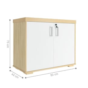 O balcão possui uma prateleira interna para melhor armazenamento. Acompanha chave para o travamento das portas, possibilitando a e privacidade que você precisa!