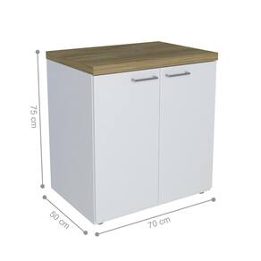 Balcão feito com suas laterais, prateleiras, fundo e portas em MDP e seu tampo em Tamburato 37mm com fita de borda PVC. Contém seu fundo branco, podendo ser como divisórias, uma prateleira fixa e sapatas plásticas.