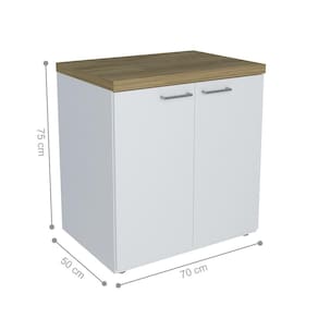 Balcão feito com suas laterais, prateleiras, fundo e portas em MDP e seu tampo em Tamburato 37mm com fita de borda PVC. Contém seu fundo branco, podendo ser utilizado como divisórias, uma prateleira fixa e sapatas plásticas.