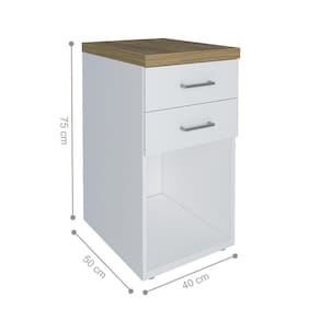 Feito com laterais e fundo em MDP com fita de borda PVC, seu tampo em Tamburato 37mm. Contém duas gavetas com corrediça de 400mm e sapatas plásticas.