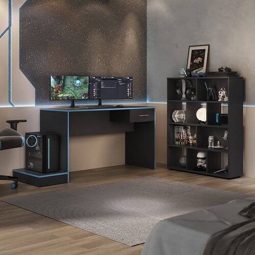 1x Escrivaninha Gamer 1 Gaveta Com Suporte para Gabinete, Mesa para Computador Preto/Azul Largura: 160,5 cm Altura: 74,5 cm Peso: 22,8 kg Profundidade: 55,5 cm Necessita Montagem: Sim