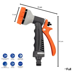 - 1 Hidropistola com 6 tipos de jato com sistema Engate Rápido Tramontina Multifunção.