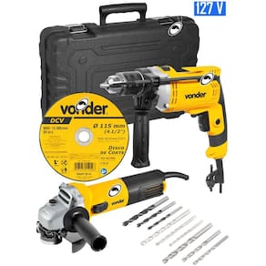 Esmerilhadeira indicada para realizar corte, desbaste e acabamento em superfícies metálicas, e furadeira ideal para perfurar metal e madeira na função sem impacto e na função com impacto para concreto e alvenaria. As ferramentas devem ser utilizadas com os acessórios adequados.