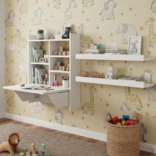 Conjunto Estante com Mesa Dobrável e 2 Prateleiras Aba Branco. A Estante de Parede com Mesa Dobrável é Compacta, Moderna e Funcional Perfeita para ambientes com pouco espaço, esta estante de parede com mesa retrátil une praticidade e estilo em um só móvel. Com design moderno e acabamento clean, ela conta com prateleiras para livros, objetos decorativos e itens do dia a dia, além de uma mesa dobrável que se transforma em uma estação de trabalho funcional. Ideal para quem precisa de um espaço organizado e versátil para estudar, trabalhar ou simplesmente decorar com inteligência. Otimize seu ambiente sem abrir mão da elegância e da utilidade.