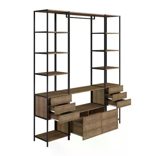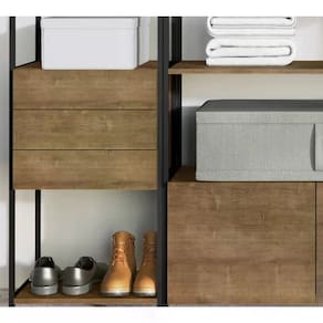 Conjunto Estante Closet 03 Peças, com desing versátil, pode ser utilizada no quarto, no closet, na lavanderia ou até como expositor para uma loja de roupas com decoração, Combo 27801 da Linha Steel Quadra, Estilo Industrial, minimalista e com combinação entre vários módulos. Estrutura metálica em Aço com espessura de 15mm e acabamento com pintura anticorrosiva. MDP com acabamento em pintura BP na cor Vermont (Fosco). Composto por 08 gavetas com corrediças metálicas, 01 cabideiro, 09 prateleiras garantindo muito mais espaço para organização dos seus itens, suporta até 5 kg cada uma. Mais produtos da Linha Steel Quadra, você encontra em nosso site, podendo fazer a composição completa para sua casa, são diversos itens com design prático e funcional para tornar a vida mais facil e a casa mais alegre. Estes móveis chegaram em sua casa separados em 03 volumes.