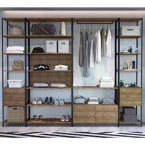 Conjunto Estantes Para Closet 04 Peças, com desing versátil, pode ser utilizada no quarto, no closet, na lavanderia ou até como expositor para uma de roupas com decoração, Combo 27801 da Linha Steel Quadra, Estilo Industrial, minimalista e com combinação entre vários módulos. Estrutura metálica em Aço com espessura de 15mm, pintura anticorrosiva, e em MDP, acabamento em pintura BP na cor Vermont (Fosco). Composto por 08 gavetas com corrediças metálicas, 01 cabideiro, 18 prateleiras garantindo muito mais espaço para organização dos seus itens, suporta até 5 kg cada uma. Mais produtos da Linha Steel Quadra, você encontra em nosso site, podendo fazer a composição completa para sua casa, são diversos itens com design prático e funcional para tornar a vida mais facil e a casa mais alegre. Estes móveis chegaram em sua casa separados em 04 volumes.