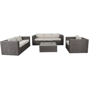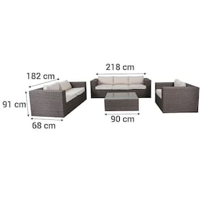 INCLUSO: 1 poltrona, 1 sofá médio, 1 mesa e 1 sofá pequeno de 107 cm de largura x 91 cm de altura x 68 cm de profundidade