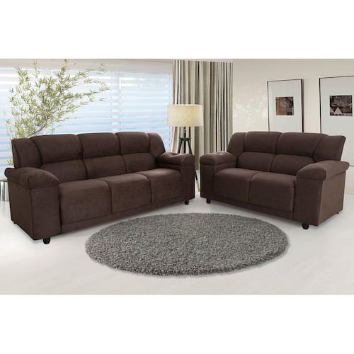Pés em pvc especial para melhor suporte de peso, juntamente com assento montados com persintas elásticas de alta resistência garantido suporte de 110 kg por assento. Produto Montado: Não Acompanha Almofadas extras: Não Almofada do assento: Fixa Almofada do encosto: Fixa Altura do assento até o chão: 49.0000 Altura do Encosto: 58 cm Altura dos Pés: 3 cm Ambiente Principal: Sala de Estar codigo_ean: 7909903121719 Cor: Marrom Cor do Produto: Marrom Densidade do Assento: D-28 Densidade do Encosto: Camadas de Densidades Diferentes Enchimento do Assento: Espuma Enchimento do Encosto: Fibra Siliconada Estilo de Braço: Braços Largos Itens Inclusos: 1 Sofá 2 lugares e 1 sofá 3 lugares Material dos Pés: PVC Necessita Montagem: Não Origem do Produto: Nacional Peso: 67,67 kg Pet Friendly: Não Possui Percintas Elásticas: Sim Possui Pés: 08 Possui Rodízio: Não Recomendações de Uso, Manutenção e Limpeza: Não Suporta Até (kg): 110 kg Tecido Predominante: Veludo Tipo de Encosto: Fixo Tipo de Mola: Não Possui Ean: 7909903121719