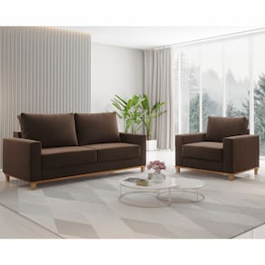 O Sofá é o coração de qualquer sala de estar, oferecendo um local para o relaxamento do dia a dia e a socialização. É um convite aberto para se acomodar e desfrutar de momentos tranquilos em casa. O Conjunto Estofado Living + 1 Poltrona Napoles Marrom é uma opção acessível para quem busca funcionalidade e conforto. Construído com madeira, este modelo oferece a resistência e a simplicidade necessárias para o uso diário, mantendo uma estética limpa e convidativa. Seu design e estofamento proporciona um assento confortável e apoio adequado. O acabamento de Tecido complementa o visual do sofá, promovendo uma aparência mais lisa e homogênea. O Conjunto Estofado Living + 1 Poltrona Napoles Marrom é revestido com Linho, escolhido por sua durabilidade e facilidade de limpeza, ideal para a vida cotidiana movimentada. Este sofá foi projetado para oferecer conforto, seja para se sentar e ler um livro ou para reunir amigos e família. Seu designe garante que ele se adapte a diversos ambientes e estilos decorativos, desde o tradicional ao contemporâneo. Ele pode ser facilmente integrado com outros itens da linha Casa Giulia, permitindo que você crie um espaço coeso e acolhedor. Complemente o seu Conjunto Estofado Living + 1 Poltrona Napoles Marrom com rack, painel e poltronas, sem comprometer a funcionalidade.