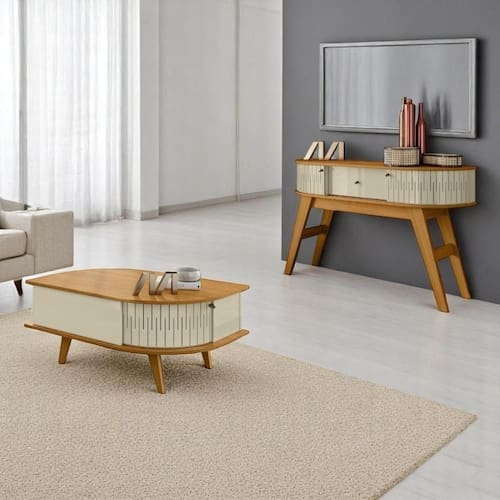 O Aparador com Mesa de Centro irão completar o seu ambiente, ambas possuem design único e inovador que irão deixar qualquer espaço ainda melhor. Proporcionando um ambiente elegante e organizado para sua casa.