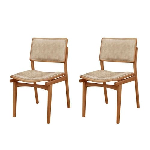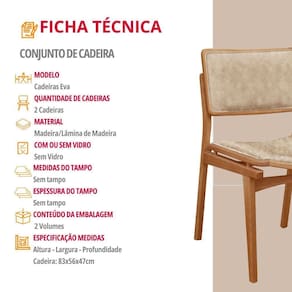 Conjunto Eva Com 2 Cadeiras Madeira Moderna Mobília Milano / Imbuia Nat. Produzida com materiais de alta qualidade e acabamento impecavel as cadeiras Eva trazem um toque natural em qualquer ambiente. Feitas em madeira macica e cuidadosamente estofadas no assento e encosto, proporcionam o equilibrio perfeito entre conforto e design.